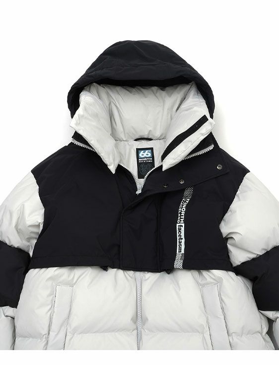 1962年にアイスランドの漁師や捜索救助隊のために誕生した66°Northは、予測不能なアイスランドの気候に対応する高い品質、耐久性、性能を備えています。このコラボレーションでは、アイスランドの山岳地帯からインスピレーションを得たカラーを基調に、日本の富士山とアイスランドの火山などをイメージしたグラフィックやネーミングを採用しています。100%リサイクルナイロンとポリエステルを用いて作られた防水・防風仕様のダウンジャケットです。