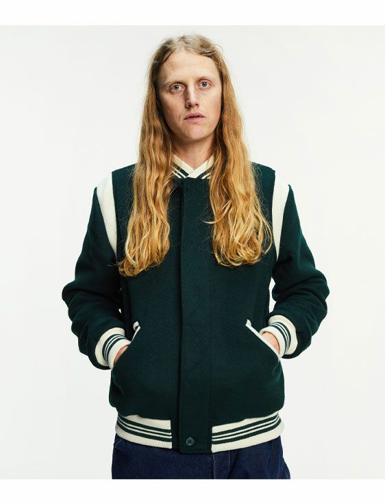 POP TRADING COMPANY PARRA VARSITY JACKET IN PINE GREEN【only L size】