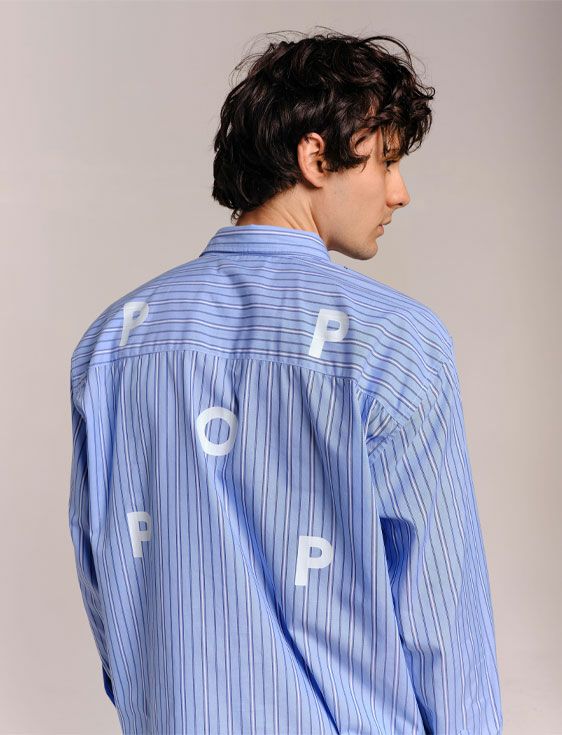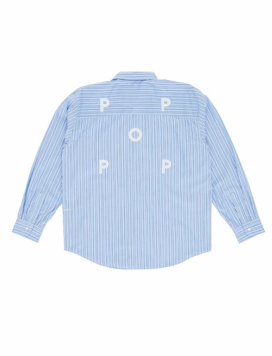 POP TRADING COMPANY STRIPED LOGO SHIRT IN BLUE【only XL size】