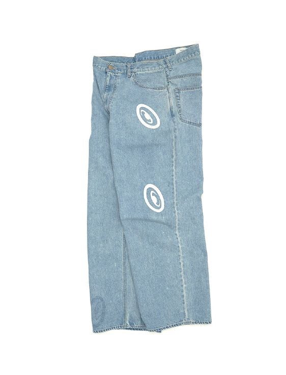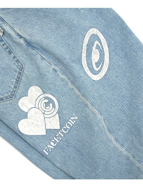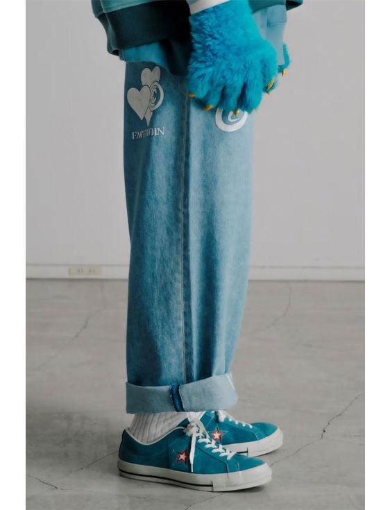 落合宏理が手掛けるFACETASMと、覆面現代アーティストとして注目を集めるCOIN PARKING DELIVERYのコラボレーション。COIN PARKING DELIVERYとの、コラボロゴなどをプリントデザインしたブリーチ加工のデニムパンツ。裾裏にも同プリントが施されており、さりげない遊び心を演出。FACETASMらしいワイドシルエットで、様々なスタイルに合わせやす1本。