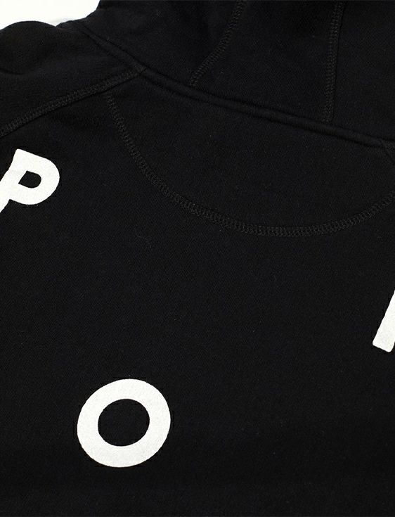 サイドにスクリプトロゴの刺繍とバックにポップロゴのプリントが入った定番デザインのフーディ。